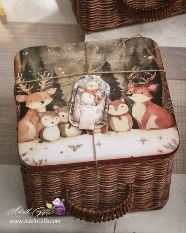 Winter Woodland Rattan Box. Size 21x21x13cm Area dalam 19x19xt12cm