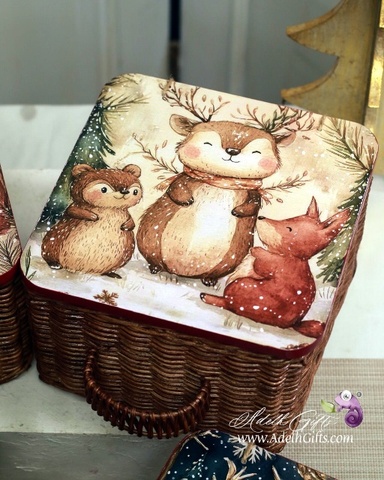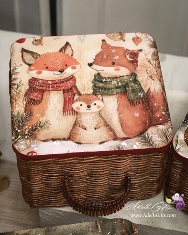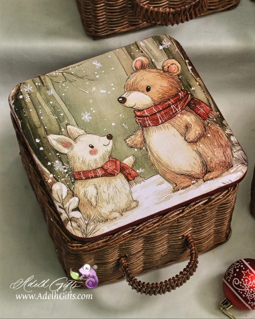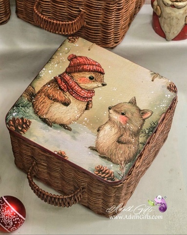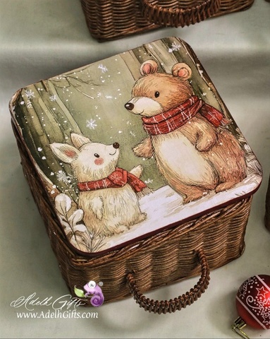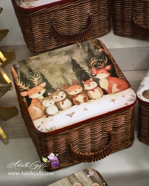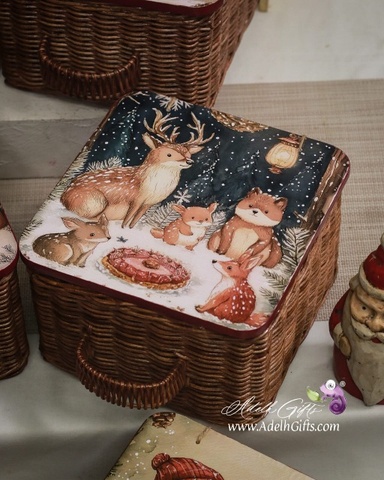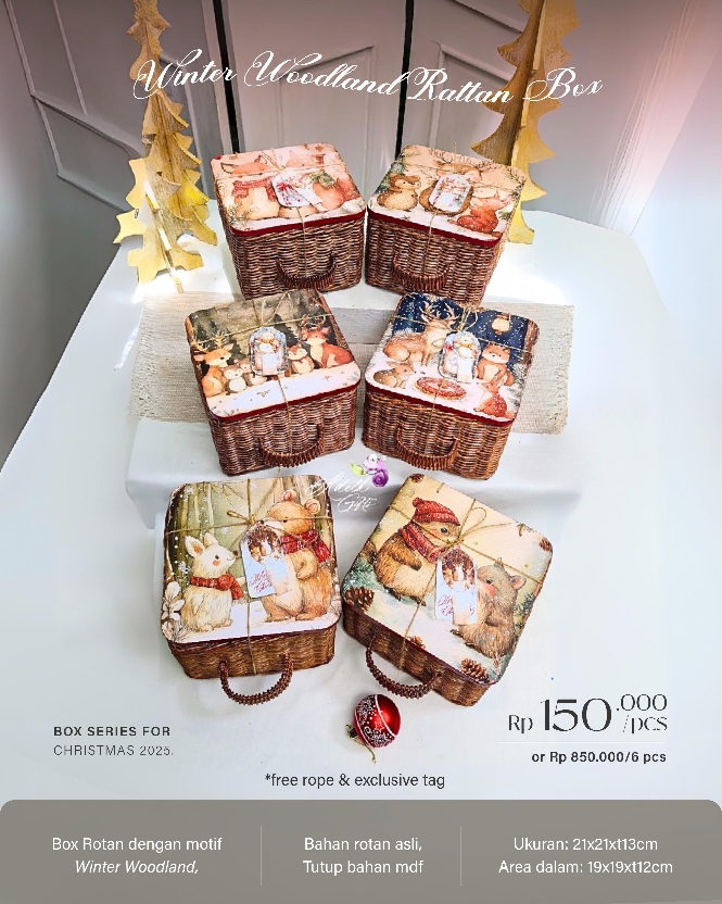 Winter Woodland Rattan Box. Size 21x21x13cm Area dalam 19x19xt12cm