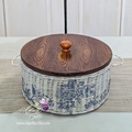 Rotan 25cm Delft Blue Tutup Wood Motif